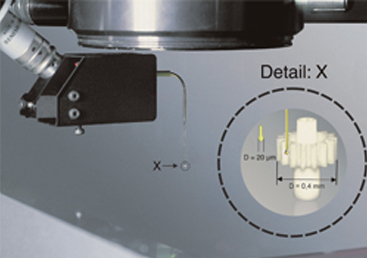 ◆ 测头直径为20微米,可以用于测量小的零件的几何细节,如孔,角度等。
